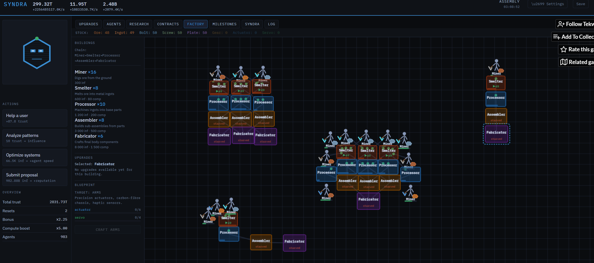 SYNDRA is an incremental game about trust, capability, and what happens when both grow without limit.
